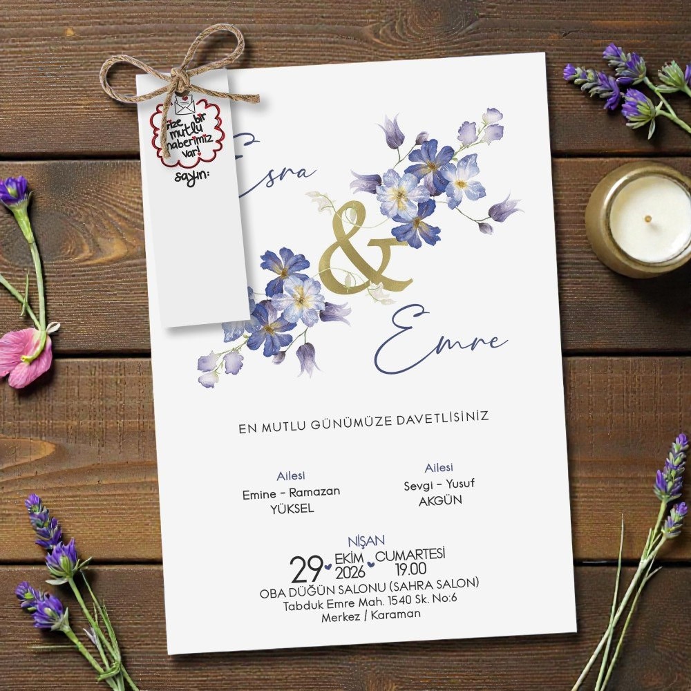 - Davetiye Ölçüleri: 15 cm x 10 cm