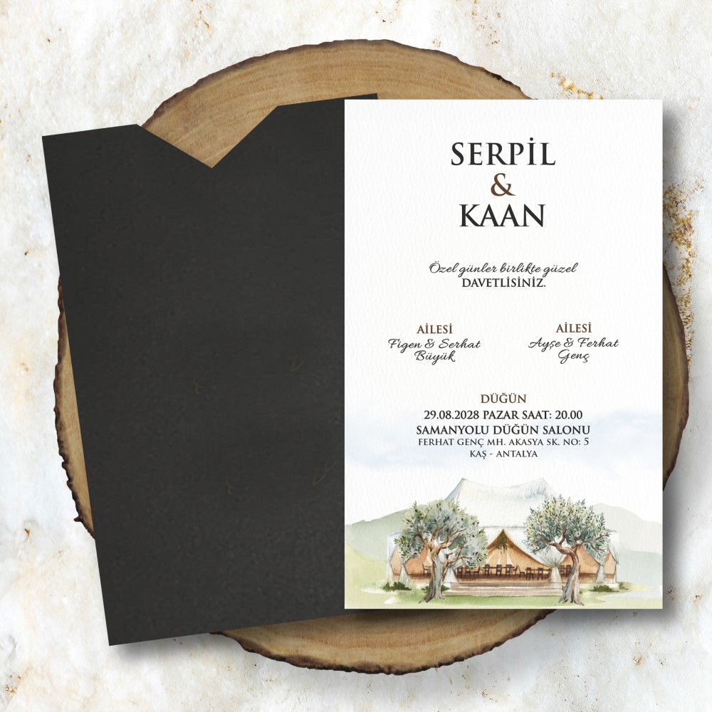 - Davetiye üzerine yazılacak yazılar ve yapılacak tasarım için, siparişinizden kısa bir süre sonra size WhatsApp üzerinden ulaşacağız.
